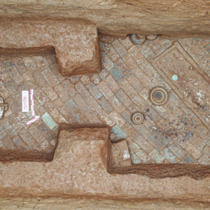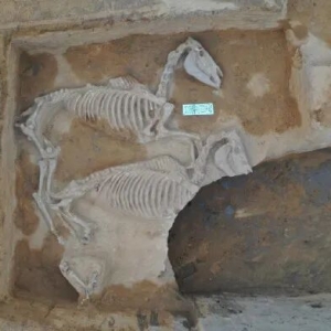 发掘区域全景(上为北)元代济南王张荣家族墓地位于今济南历城区章灵丘村北。2021年10月至2022年9月,由济南市考古研究院主持发掘。初步判断相关墓葬32座,包括砖雕壁画墓5座、石室墓9座、土洞墓18座,墓葬排列有序,自北向南成排分布。出土各类瓷器及陶俑500余件(组),其中官窑和青花瓷器共计40余件。另外,还发现石碑4件、龙纹碑首2件、赑屃碑座1件、 ...