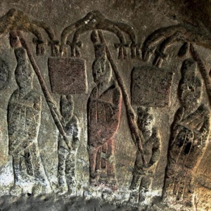 贵州省正安“官田宋墓” 闵凯 摄 近日,贵州省文物考古研究所考古队员在正安县新州镇茨梨村清理发掘两座宋代石室墓时,发现墓中数量众多的石刻,其中以蛇首人身像、鼠首人身像最为特别,为贵州首次发现。贵州省正安“官田宋墓” 闵凯 摄 据贵州省文物考古研究所考古队员闵凯介绍,“石刻的人物以武士、侍女为主,武士或持弓箭、或使大刀、或握长剑。其中以蛇首人身像、鼠首人身像的武士石刻最为特别,在贵州为首次发现。兽 ...