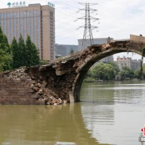 百年老桥断裂,令人痛心。 中新社记者 王刚 摄 7月6日,记者从杭州市园林文物局了解到,因连日暴雨,6日凌晨4点多钟,位于杭州下城区上塘河上的欢喜永宁桥发生了垮塌,所幸无人员伤亡。 欢喜永宁桥为单拱形石桥,原名李王桥,建于清乾隆三十五年(1770),是杭州市级文物保护单位。该桥总长47米,宽6.5米,拱券采用纵联分解并列式砌筑。作为一座横跨上塘河的石桥,它一直是两岸居民的生活要道之一。 据杭州市园 ...