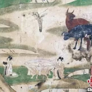 8月7日,敦煌研究院梳理解读了敦煌石窟文献中古人吃秋食的养生之道。图为莫高窟第61窟的《村女献乳》(五代)。由鲜奶浓缩发酵而来的奶酪也不是西方人的专利,唐代敦煌的僧人和上层贵族就经常食用。敦煌研究院供图 中新网兰州8月7日电 (记者 徐雪)8月7日,是中国二十四节气中的“立秋”,敦煌研究院当日梳理解读了敦煌石窟文献中古人吃秋食的养生之道。 “立秋之时食瓜,曰咬秋。”是《津门杂记·岁时风俗》中记