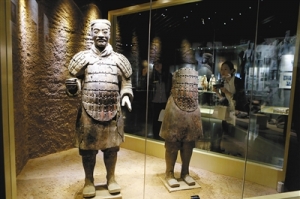 展示的秦俑 据历史文献记载,我国古代工匠曾调出了两种特殊的色彩,“中国蓝”和“中国紫”,但随着岁月的流逝,“中国蓝”和“中国紫”究竟是个什么颜色,却一直无人知晓。8月30日,记者从秦始皇帝陵博物院等单位策划举办的 “留住色彩——陶质彩绘文物保护成果展”上了解到,文保专家们首次在秦兵马俑的彩绘中发现“中国蓝”和“中国紫”。 为啥从前一直“灰头土脸”? 长期以来,秦兵马俑一直给人一种“灰头土脸”的印 ...