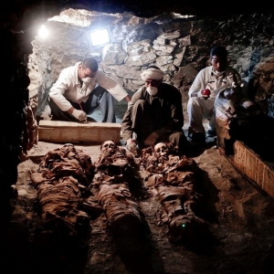 当地时间2017年9月9日,考古学家在埃及卢克索发现了一座埃及新王国时期古墓,古墓属于一名御用金匠。考古学家正在研究古墓中的木乃伊。摄影:NARIMAN EL-MOFTY, ASSOCIATED PRESS这座埃及新王国时期的古墓里的颅骨来自一名御用金匠。埃及当局表示,墓室中的文物将帮助考古学家找到那些尚未发现的墓穴。摄影:NARIMAN EL-MOFTY, ASSOCIATED PRESS这座3500年前的古墓里有着颅骨、木乃伊、陶器以及其他文物。摄影:NARIMAN EL-MOFTY, ...