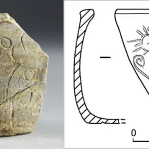 淮阳平粮台遗址是中原地区重要的史前遗址,早在20世纪70年代就发现了一座龙山时期城址,是当时发现的年代最早的城址之一,引起学界强烈关注。近年来,河南省文物考古研究院联合北京大学又对该遗址进行了大规模发掘,发掘集中在城内东南部,出土遗存以龙山文化为主。根据发掘简报可知,在一座龙山房址的室外堆积中出土了一件刻纹小陶钵,编号ⅤT3522A②c:4 ...