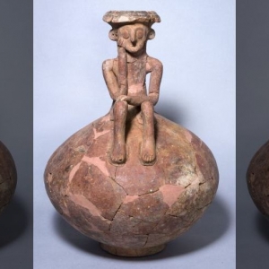 以色列叶胡德城近日出土了一件有趣的陶罐,罐口塑造了一位表情似在思考的小陶人。考古学家在一处房屋的改建过程中发现了这件制于约4000年前的陶罐。“最先显露的是罐体,属于那个时期的标准器型。接下来我们看到了这个之前从未见过的,刻画生动的小陶人。”负责发掘工作的IAA主任告诉记者。这件不寻常的陶器高约18公分,罐体呈长椭圆形。陶人坐在罐口,左手置于膝盖上,右手托着下巴,似在思考着什么。“陶人的形象塑造和细节的精 ...