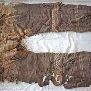 2016-11-23巩亮亮新疆之窗出土于洋海古墓的裤子 时至今日,已经没有人知道,3000年前火焰山南麓的戈壁荒漠中一次埋葬仪式上有过怎样的故事。但是,两条出土于此的裤子,却在告诉今天的人们,在那个水草丰美、驼铃声声的年代,塔里木盆地的先民已经成为中国最早穿着裤子的人。 一条“在中国吐鲁番地区洋海古墓内发现的两条裤子,可能是迄今为止发现的历史最为悠久的裤子”的消息出现在网络上。消息中称,这两条裤子的年代可 ...