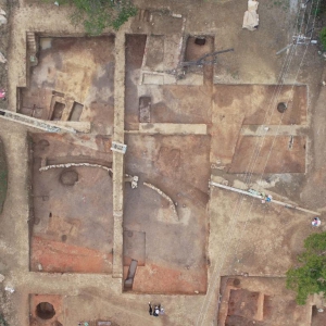 安徽省文物考古研究所日前公布了安徽省马鞍山市含山县凌家滩遗址考古工作新进展。考古专家不仅在墓地西侧发现了燎祭遗存,揭示了一处大型公共建筑基址,还出土了一批独特的玉石器,其中包括凌家滩目前发现的最大的石钺、最大的玉璜,为深入研究中华文明的起源、形成和发展提供了重要资料。凌家滩遗址红烧土及西侧区域航拍。(图片来自安徽省文物考古研 ...