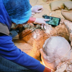 湖北省文化和旅游厅(湖北省文物局)26日公布,经过考古队的数月奋战,备受关注的“郧县人”3号头骨化石于近日被顺利提取、离土出舱,目前已进入修复、观测和研究环节。考古证明,百万年前的郧县人已会狩猎和餐食食草动物,“郧县人”3号头骨化石的进一步研究有望精准地破解直立人演化过程的谜团。12月3日,考古队员在提取头骨化石。新华社记者 伍志尊 ...
