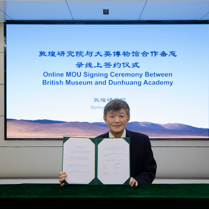 9月14日,敦煌研究院与大英博物馆就推进中英两国文化交流再次签署合作备忘录,双方约定将在学术研究、文物保护及修复、信息共享、社会教育、宣传推广、合作出版等领域开展专业人员的交流培训与互访。双方分别在合作备忘录上签字敦煌研究院院长苏伯民、大英博物馆馆长哈特维希·费舍尔(Hartwig Fischer)代表双方在合作备忘录上签字。签署仪式在线上进行, ...