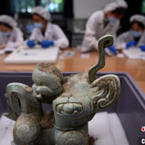 “8号祭祀坑出土的青铜神兽、青铜神坛和3号祭祀坑出土的被称为‘奇奇怪怪’的铜顶坛人像或可拼对。”三星堆博物馆文保中心副主任郭汉中29日接受中新网记者专访时透露,根据器物断口处的联系,目前文保中心专家已用电脑合成了3件器物拼对为一体的图片。8号祭祀坑出土的青铜神兽。 张浪 摄 指着并排放置的三件器物,郭汉中解释道,“青铜神坛上层的 ...