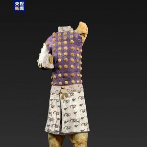 秦始皇帝陵博物院7月20日发布秦陵K9901陪葬坑,也就是俗称的百戏俑坑出土的4号、28号百戏俑最新研究成果。秦陵博物院副院长周萍研究员介绍,4号俑上身着衣,布满泡钉,泡钉间装饰有太阳八角纹;下身着裳,绘有大量精美纹饰。残存的彩绘图案主要集中上衣、领缘、袖缘和裤子腰带等部位,主要是八角星纹、几何纹饰和云气纹,呈现白色、黑色、黄色和紫色。研究 ...