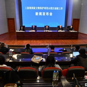三星堆国家文物保护利用示范区创建工作新闻发布会29日在四川广汉举行。四川省文物考古研究院院长唐飞在会上透露,下一步三星堆遗址的发掘工作仍将以祭祀区遗迹为重点,除了继续开展祭祀区新发现的建筑遗迹的发掘之外,还将以进一步了解三星堆城址聚落结构为目标,开展月亮湾区域的考古发掘。新闻发布会现场。 张浪 摄 会上,唐飞对三星堆新发现6 ...