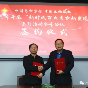 4月18日是一年一度的国际古迹遗址日,中国考古学会与中国文物报社就共同开展新时代百项考古新发现展示推介系列活动签订合作协议。中国考古学会理事长王巍,中国社会科学院考古研究所党委书记张国春,所长、中国考古学会副理事长陈星灿,中国文物报社社长柳士发、总编辑李让、副总编辑李学良出席签约仪式。中国社会科学院考古研究所党委委员、科研处负 ...