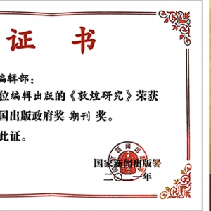 2021年7月29日,中宣部在北京召开了第五届中国出版政府奖表彰会,对获第五届中国出版政府奖荣誉奖、图书奖、期刊奖、音像电子和网络出版物奖、印刷复制奖、装帧设计奖的123种出版物、50家先进出版单位和69名优秀出版人物进行了表彰。《敦煌研究》等20种期刊荣获中国出版政府奖期刊奖。《敦煌研究》荣获第五届中国出版政府奖期刊奖证书、奖杯中国出版政府奖 ...