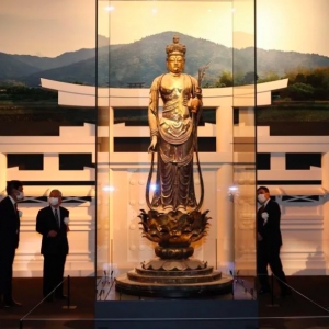 “国宝·圣林寺十一面观音——三轮山信仰之神”目前正在日本东京国立博物馆展出,她曾给人摆脱灾厄的信仰,恰与当下被新冠病毒折磨的人类产生共鸣。在博物馆展厅,无论哪个角落,都能感受到“十一面观音”严厉而温柔的注视。日本东洋文化学者和辻哲郎将其描述为“显现出神的威严和不为人知的美”。8世纪的“圣林寺十一面观音菩萨立像”被认为日本雕塑的最 ...