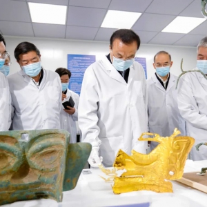 一座巨大的灰色钢结构“考古大棚”内,身着防护服的考古工作者在发掘坑内趴在悬空的操作台上,小心翼翼地工作着。4月19日,李克强来到四川广汉三星堆考古发掘现场。现场负责人介绍,三星堆此次考古发掘又有新的重大发现。总理认真听取情况介绍并仔细察看发掘现场后说,看到这么多学科的年轻学者,在今天这样一个快速发展的时代,仍然专注于考古事业,心还 ...