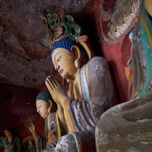 近日,在四川安岳县最北部的一处寺院内,发现刻于南宋的唐代川密祖师柳本尊教派的三世佛造像一龛,这是在岳北地区首次发现柳派造像遗址。主尊毗卢遮那佛头戴化佛宝冠顶部与岩顶间刻有一只振翅欲飞的大鹏金翅鸟,此类站立于冠顶的金翅鸟完整形象在石窟内为首见。在安岳最南面的茗山寺石窟中,全国唯一一尊呈立姿的毗卢佛化佛冠上似也有一只金翅鸟立于冠顶, ...