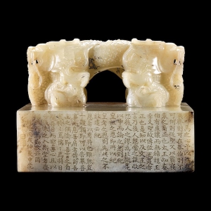 香港苏富比春拍“中国艺术珍品”专场于今天下午2点举槌。澎湃新闻获悉,一方圆明园旧藏的清乾隆“纪恩堂”玺以1.25亿港币落槌,含佣金约1.45亿港币的总价成交,创造了圆明园流失文物拍卖第二高价。清乾隆 乾隆帝御宝交龙钮白玉玺 印文:纪恩堂乾隆御宝交龙钮白玉“纪恩堂”玺,质地为玉,交龙钮,阳文篆刻“纪恩堂”三字,印体周围阴刻乾隆帝御制文《纪恩 ...
